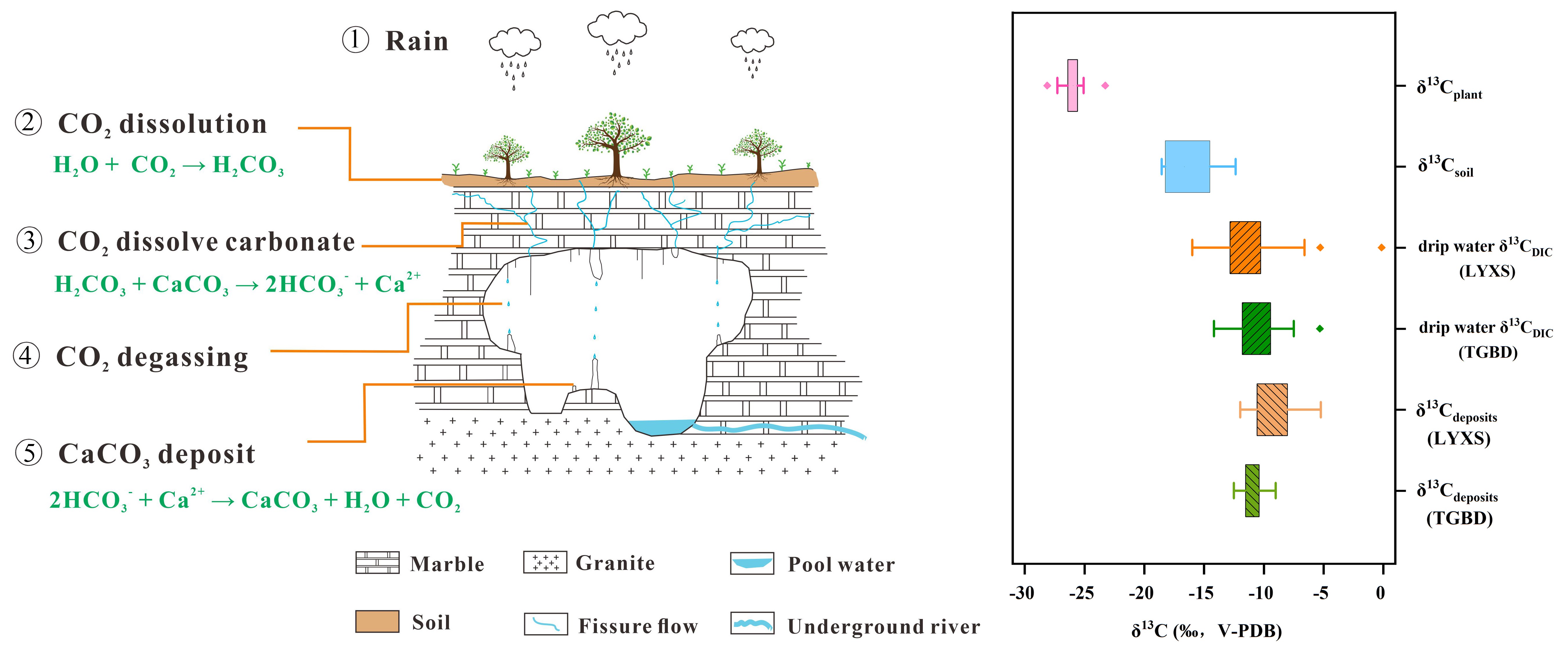 图3 鸡冠洞洞穴系统碳同位素传输机制的概念模型