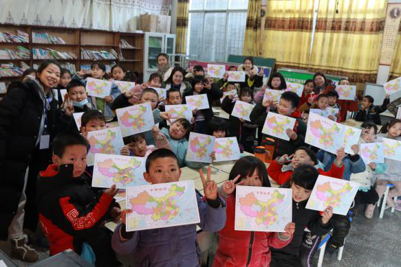 1月12日上午,泉孔小学志愿服务队一行抵达泉孔小学,受到全校师生热情欢迎。志愿服务队首先代表388vip太阳集团向泉孔小学赠送了文体用品等物资,随后在校方的引领下参观了校园。根据与校方共同制订的教学方案,此次的授课以地图拼图课、手工课、垃圾分类课为主,辅以音乐课、户外体育课等课程。正式上课之前,队员们除了认真准备课件、讨论授课细节、模拟课堂训练、检查多媒体设备以外,还利用课间休息时间和孩子们开展了破冰活动,拉近与孩子们的距离、增进彼此了解,为课堂授课做足了准备。