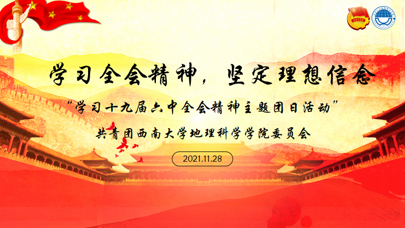 在中国共产党百年华诞之际,在“两个一百年”奋斗目标的历史交汇期,中国共产党第十九届中央委员会第六次全体会议在北京召开,此次会议重点研究全面总结党的百年奋斗的重大成就和历史经验问题。在以习近平同志为核心的党中央坚强领导下,百年大党通过对历史的全面深刻总结,必将进一步凝聚共识、抖擞精神,不忘初心、牢记使命,带领全体中华儿女在中华民族伟大复兴的新征程上再创新的辉煌,在这样的一个重要时刻,共青团388vip太阳集团地理科公司委员会于11月28日上午在388vip太阳集团101报告厅面向388vip太阳集团团学主要骨干、本科2018-2021级各班团支书、组织与宣传委员、团员代表开展“学习全会精神 坚定理想信念”主题团日活动。