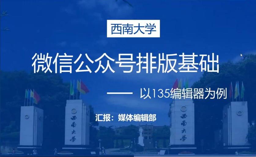 会议第二项议程,由媒体编辑部申雯洁同学做新媒体运营培训——推文排版篇的培训分享。申雯洁同学以135编辑器为例,从“页面熟悉”“排版流程”“注意问题”“过程演示”等四个方面进行详细地推文排版指导。指导过程中,申雯洁同学以推文《你听,春来了》为例进行现场分析,重点说明排版过程需要注意的细节。