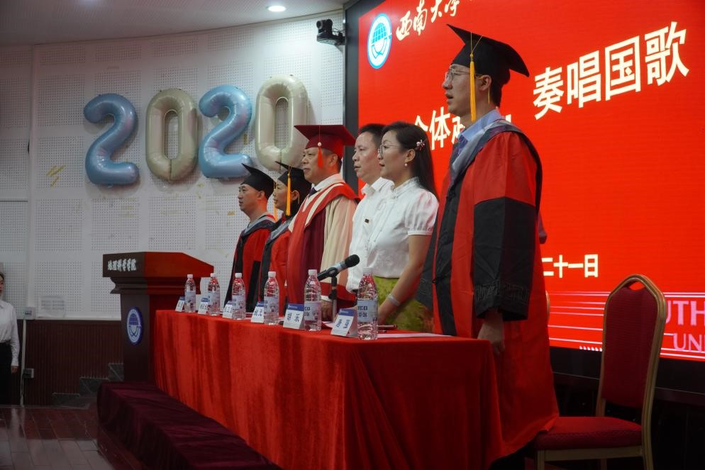 “缙云苍苍,嘉陵泱泱。山高水长,养育栋梁。”在《388vip太阳集团校歌》的回响中,2024届员工毕业典礼暨学位授予仪式正式结束。期待毕业生们能够秉持“明理有德,尚思笃行”的院训,书写属于他们的人生新篇章。