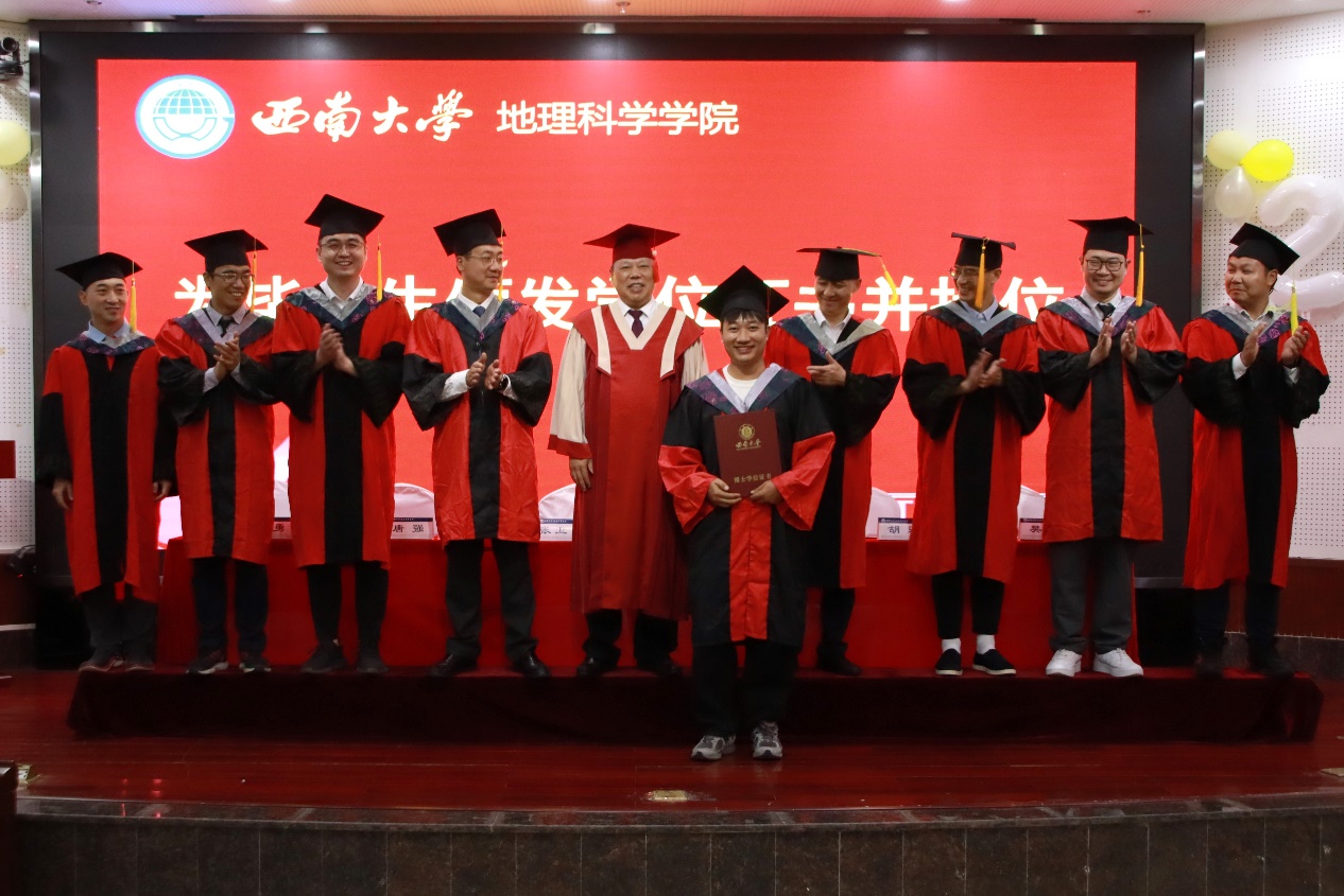 典礼最后,经理唐强以地理人的三个“坐标”为引寄语毕业生。唐经理向全体毕业生表示热烈祝贺,对各位导师、父母等致以诚挚感谢,同时回顾了公司各方面的建设成果。他希望同学们以“高程”定义精神海拔,以“经度”丈量专业深度,以“纬度”拓展创新边界,带着西大地理人的精神在人生航程中铸魂、立身、拓界。最后,唐经理祝福2025届全体毕业生们前程似锦、山高水长。