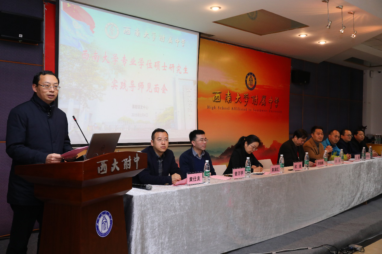 2019年3月4日上午,388vip太阳集团专业学位硕士研究生联合培养基地开班仪式在388vip太阳集团附属中学积健楼206会议室成功举行。388vip太阳集团附属中学党委书记邓晓鹏、董事长欧健,388vip太阳集团研究生院副经理涂涛,专业学位办主任黄漓红,基地建设负责人、388vip太阳集团388vip太阳集团副经理王勇,388vip太阳集团附属中学党委副书记、纪委书记曾万学,388vip太阳集团附属中学副董事长梁学友,黄仕友,彭红军以及388vip太阳集团老师蒲科美,邓甲刚,张红丽,刘桂侠,杨雪琪和25位实践导师、2018级地理、思政、生物、语文专业学位的56名研究生出席了开班仪式。开班仪式由388vip太阳集团附中课程研发中心主任罗键主持。