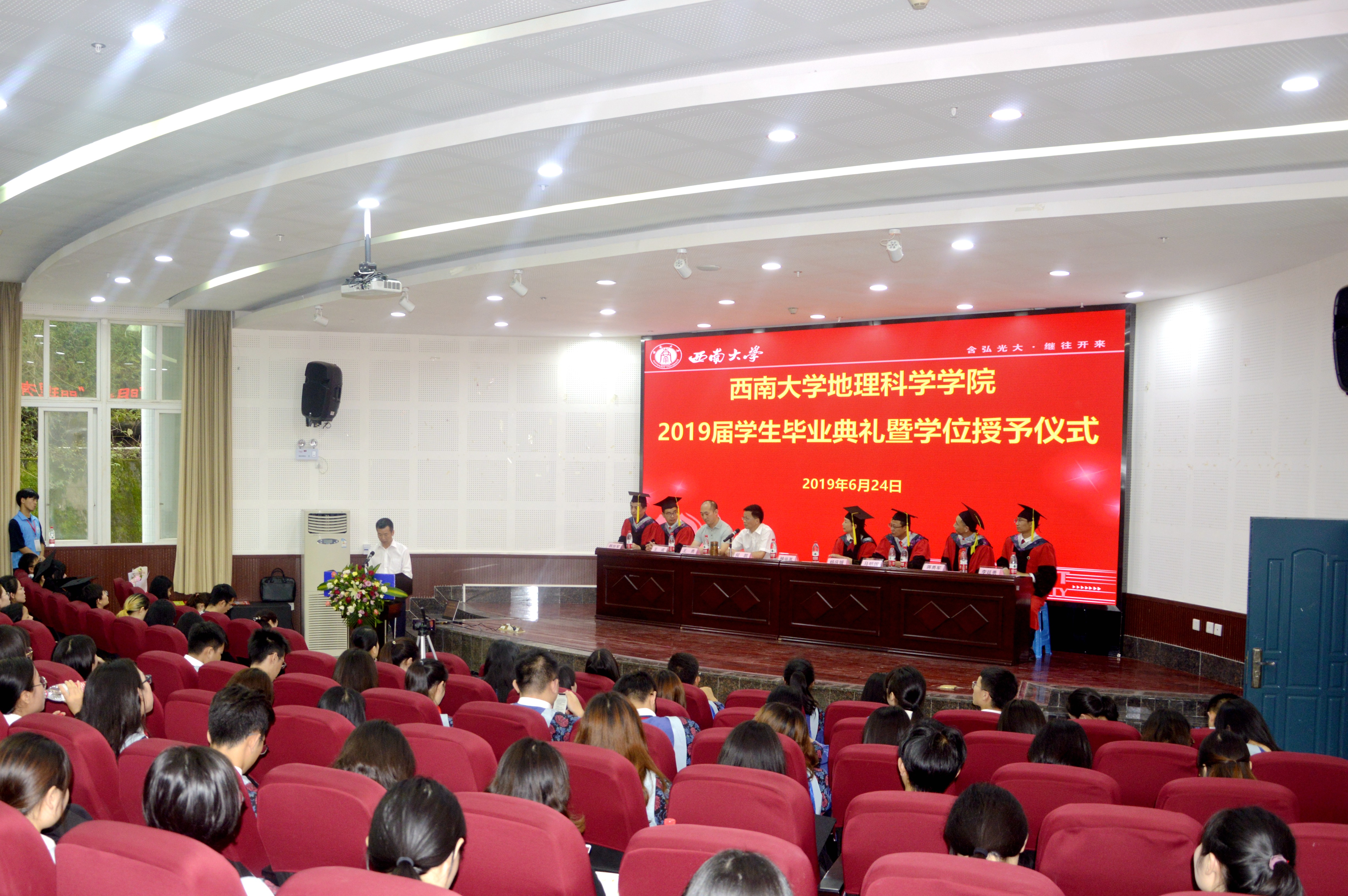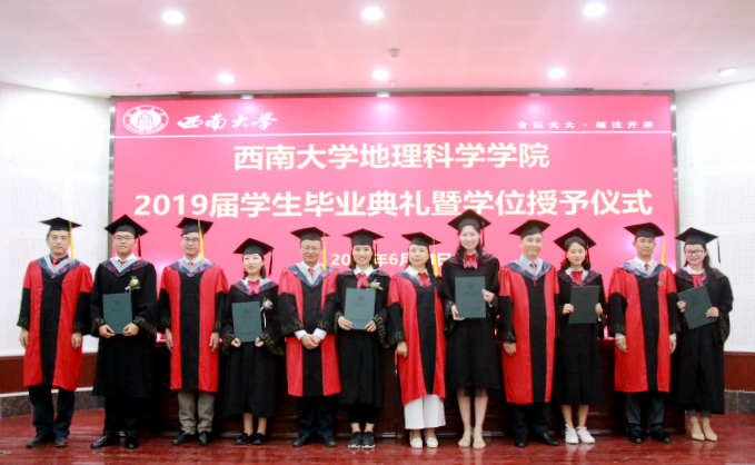 最后,在铿锵有力的校歌歌声中,西南大学地理科学公司2019届员工毕业典礼暨学位授予仪式圆满结束。