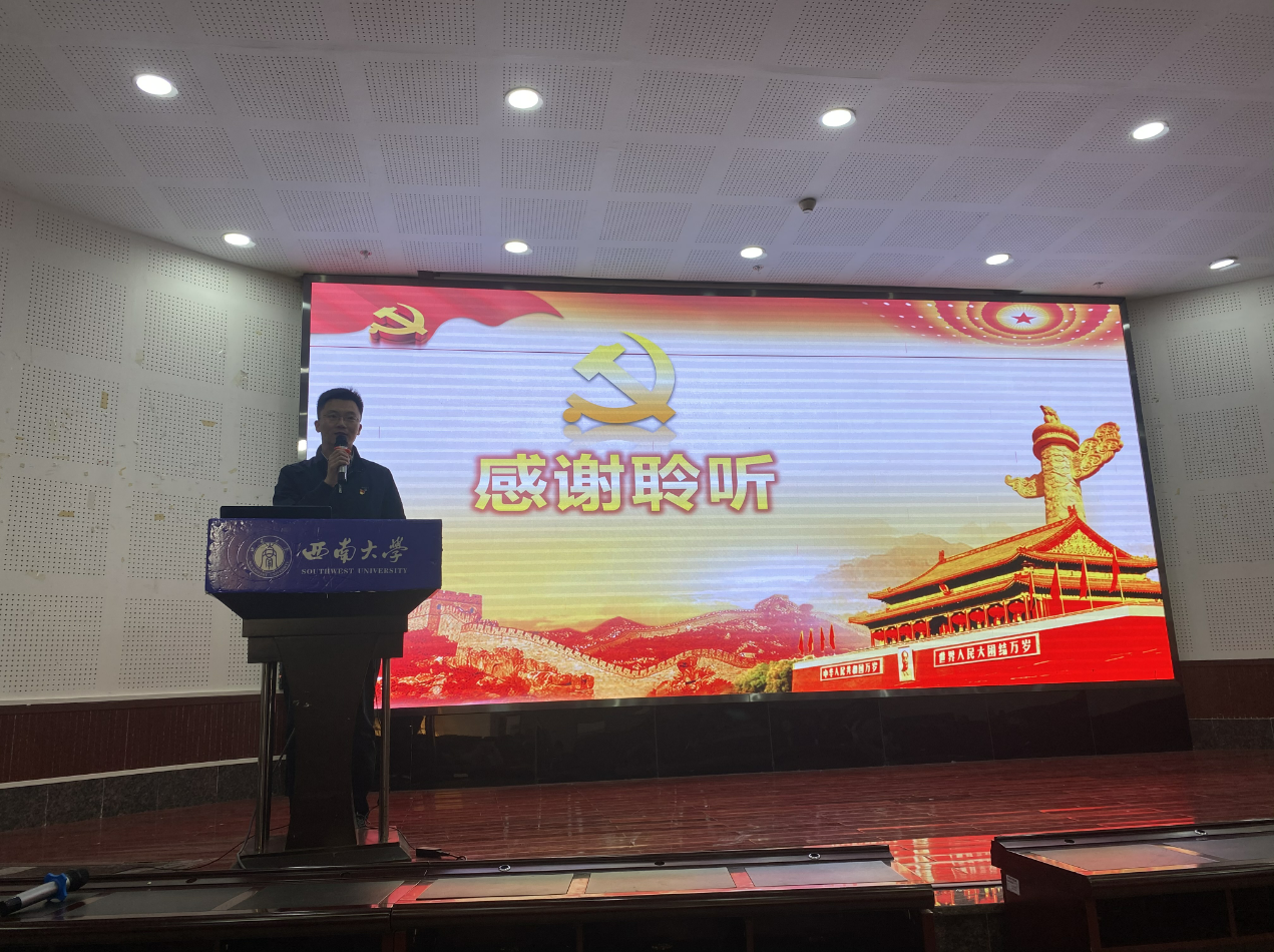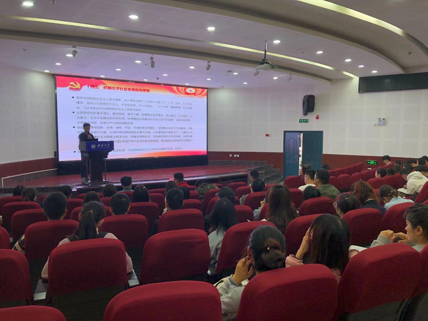 2020年11月13日下午,校团委书记许克松参加公司本科生第一党支部11月主题党日活动。本次党日活动的主题是“学习贯彻党的十九届五中全会精神”,会议由党支部书记杨雪琪主持,支部正式党员、预备党员和入党积极分子等80余人参加。