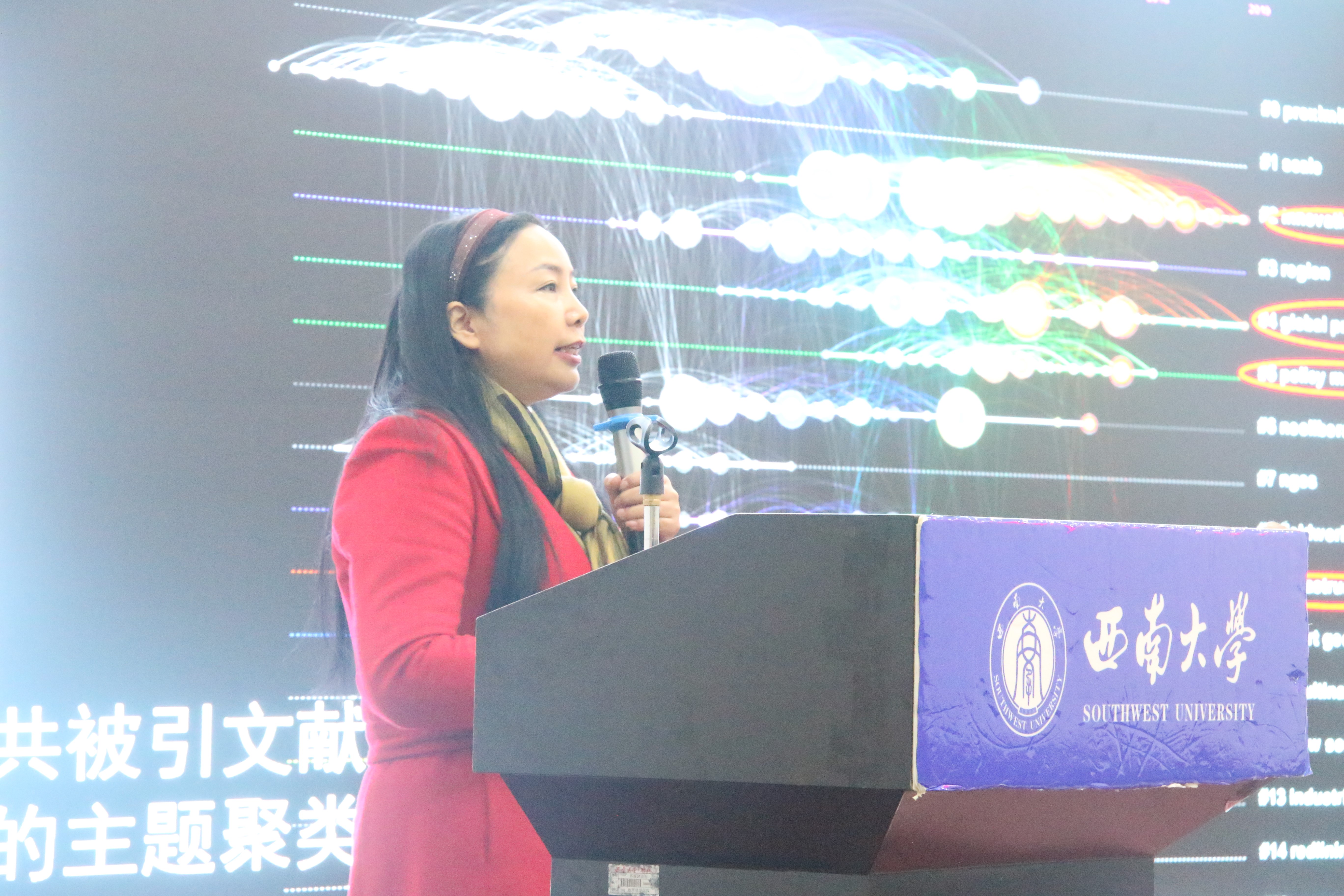 本次会议分为上下两场。会议上半场由公司地理教学法教研室主任胡蓉副教授主持。公司党委书记喻尚其作开会致辞,对与会人员表示热烈欢迎,并介绍公司的发展概况及公司的发展历史。接着开始由专家学者作专题报告。388vip太阳集团杨庆媛教授的报告主题为《发展地理学的未来展望与思考》,她聚焦地理学可持续发展目标与方向,提出发展地理学视角下区域资源重塑与整合,提升和均衡城乡空间生产力等地理学展望方向。