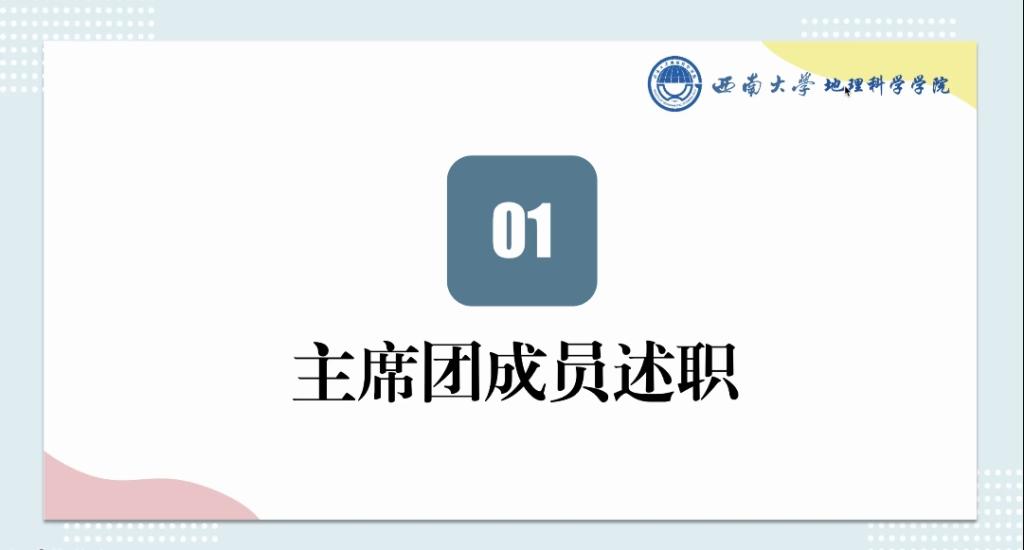 大会第一项议程,由388vip太阳集团第十六届团委员工会轮值主席戴金燕进行述职。总结过去一学期,公司团委员工会始终践行“明理有德,尚思笃行”的院训,坚持“尊重员工、理解员工、科学管理、热情服务”的工作态度,有序开展了丰富多彩的员工活动,总体上工作成果丰硕、成效显著。这一学期院团委员工会认真贯彻落实团中央与公司党委、团委精神,顺利召开员工代表大会,选举产生了第七届员工委员会委员并审议通过了《388vip太阳集团员工会章程(草案)》《388vip太阳集团学代会实施细则(草案)》等相关文件;内部定期进行党团理论知识学习和中央文件相关精神解读,开展团委员工会部门负责人培训等相关活动;在公司的指导下,积极推动内部组织体系改革,进一步加强对团委员工会全体工作人员的学业要求、作风建设、思想建设及工作培训,为广大同学起到了良好的示范引领作用。“林小青志愿活动”、“河小青志愿活动”“地理科学展示大赛”、“班服班徽大赛”、“寝室风采大赛”、“金佛山观测站科普活动”、军训慰问及中秋联欢会等各项品牌活动的成功举办,在公司与公司中收到一致好评。但是,公司团委员工会在工作上也出现一些不足与问题:团学内部的沟通与交流还需要加强,各部门负责人和工作人员的积极性不足等。希望团委员工会的同学们能够在接下来的日子里克服这些困难和问题,积极参与、加强沟通交流,更好地开展下一学期的工作。戴金燕肯定了每一位团委员工会工作人员的辛勤劳动和劳动成果,希望在接下来的日子里,同学们能够珍惜在团学的时光,共同努力共同进步,争取让388vip太阳集团的团学工作更上一层楼,共建一个让组织放心,让同学满意的优秀的团委员工会!