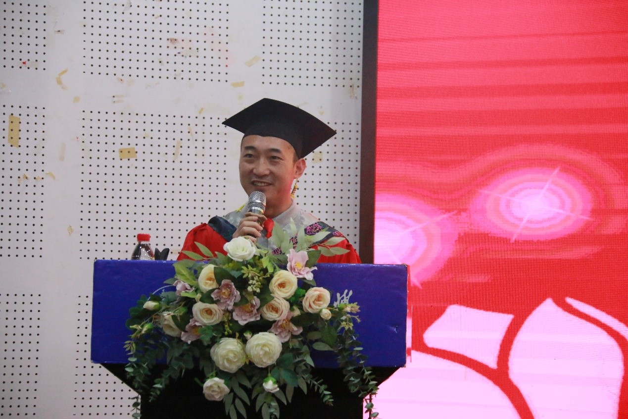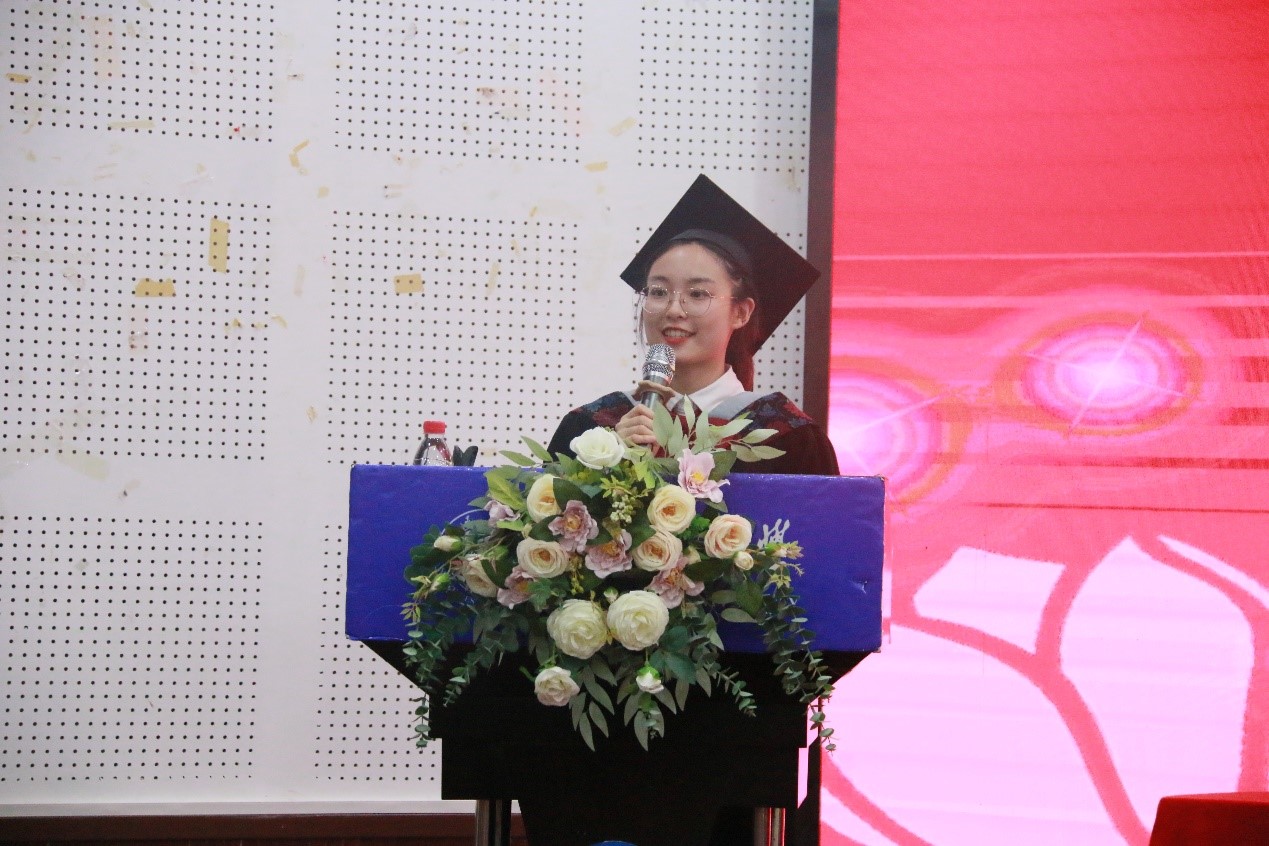 公司党委书记喻尚其向毕业生们送上毕业寄语。首先他向毕业生们表达了热烈祝贺,同时向在同学们成长成才过程中付出辛勤汗水的教职员工表示衷心感谢。喻书记带领大家回顾了这几年公司的蓬勃发展,同时也肯定了毕业生同学在几年的学习中取得的优异成绩,表示他们用行动践行了“含弘光大,继往开来”的校训以及“明理有德,尚思笃行”的院训。喻书记提出要“摆脱‘普信’,拒绝‘emo’”,保持进取的精神,保持对生活的热爱,并祝愿同学们未来在各条道路上鹏程万里。随后,由学位委员会为毕业生颁发毕业证书并授位。