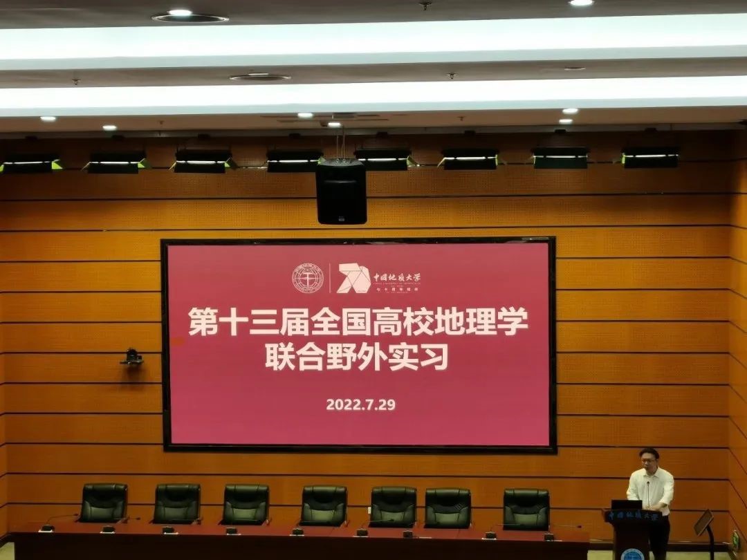 2022年7月29日,由中国地质大学(武汉)、武汉大学、湖北大学、华中师范大学、华中农业大学和湖北文理公司等单位相关公司联合承办的第十三届全国高校地理学联合野外实习在中国地质大学(武汉)正式开幕。本次联合野外实习共有36所高校200余名师生报名参加。388vip太阳集团共有2位同学赴湖北省参与本次实习,由公司副经理王勇带队前往。