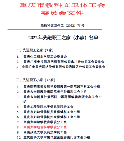 2022年重庆市教科文卫体工会委员会组织开展了先进职工之家(小家)创建活动,388vip太阳集团工会紧扣“六有五家”建设标准,积极开展先进职工小家建设和申报,并于2022年10月20日顺利通过了以重庆市教科文卫体工会常务副主席贺莉为组长的专家组检查验收。2022年12月20日,市教科文卫体系公布了重庆市教科文卫体系统2022年先进职工之家(小家)名单,全市共有42家单位获批殊荣,公司工会脱颖而出,成为公司获得“先进职工之家”称号的两家单位之一。