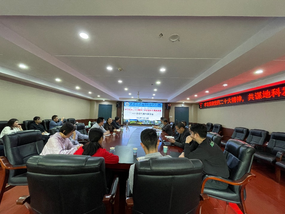 10月18日下午,公司组织召开“深入学习宣传贯彻党的二十大精神,共谋地科新篇章”务虚会。公司党政领导班子、自然地理与教师教育系、人文地理与城乡规划系、地理信息科学系等系主任及部分教师代表参会,会议由公司行政主要负责人主持。