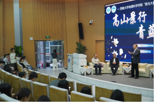 在第55个世界地球日到来之际,388vip太阳集团举办了“我与大师面对面”科学家精神进校园活动。388vip太阳集团董事长王进军出席,教育部地理科学类专业教学指导委员会副主任委员、北京师范大学地理科学学部宋长青教授,兰州大学副董事长潘保田教授,陕西师范大学副董事长董治宝教授,北京大学城市与环境公司彭建教授,388vip太阳集团青藏高原研究所汪亚峰研究员等行业专家,同西南大地理科学公司党政班子及师生代表共聚一堂,共话科学家精神。