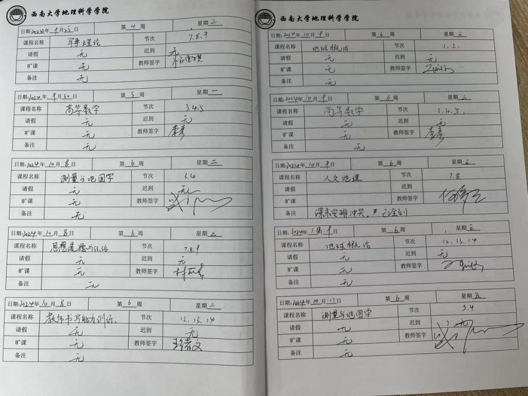此外,统一规范的课堂考勤管理制度也是公司学风建设的重要内容。各班的组织纪律委员须在任课老师抵达教室后进行现场点名,并在课程结束后请任课老师在纸质考勤表上签字确认。每周结束后,班级考勤情况将由年级助理进行统一统计与整理,并在年级群内公示。所有考勤结果将在期末时统一汇总,并作为各门课程平时成绩的重要参考依据提交至任课老师。