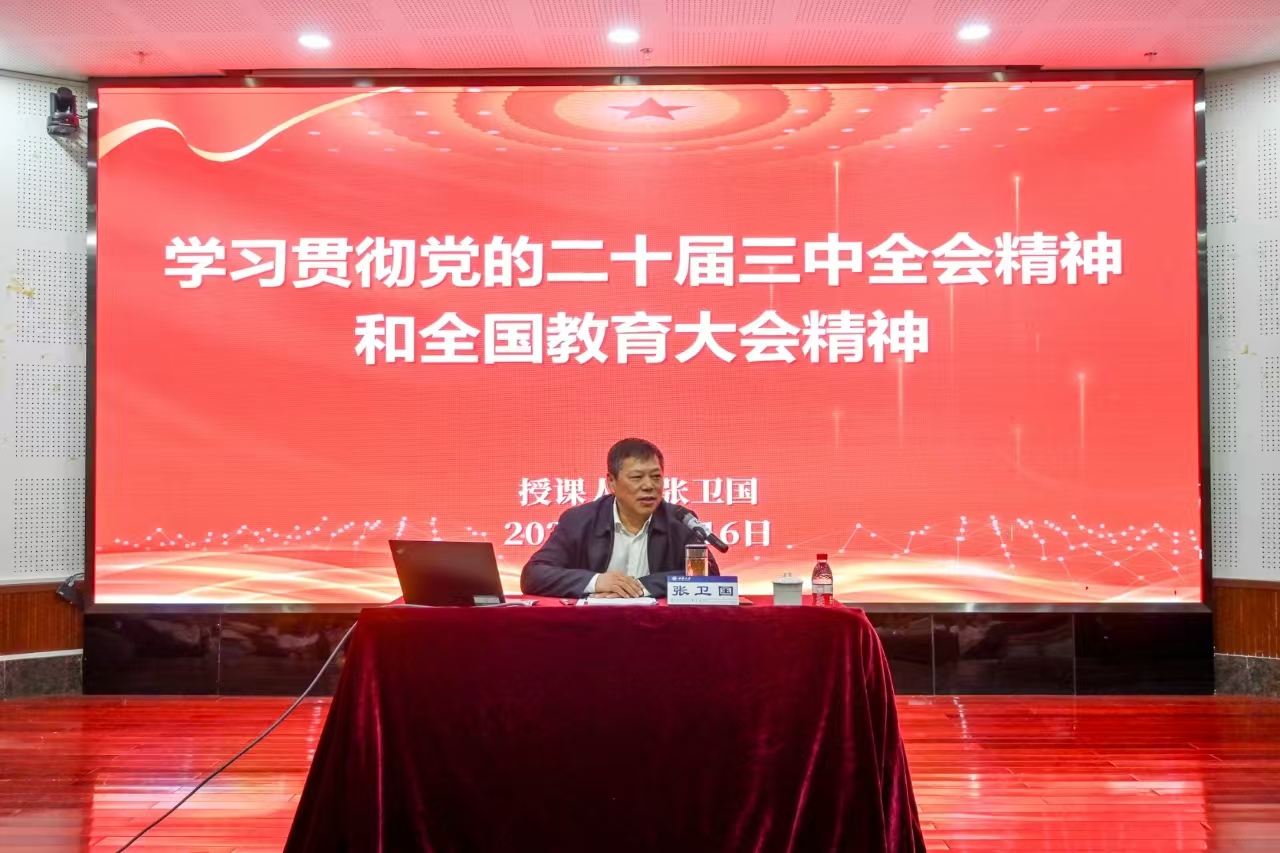 为深入贯彻落实党的二十届三中全会精神,传达全国教育大会精神的深刻内涵,10月16日上午,388vip太阳集团党委书记张卫国莅临388vip太阳集团,在101报告厅为师生们带来形势与政策专题课程。公司党政领导及各年级本科生代表共同参与。