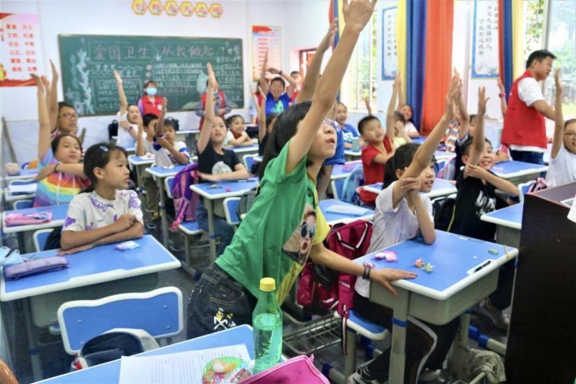 在公司老师的带领下,志愿者们来到天生桥小学五年级一班和二班。讲师志愿者通过让小朋友们对生活中常见的垃圾尝试进行垃圾分类、有奖问答等方式,鼓励小朋友们踊跃参与,大胆阐述,激发同学们对于垃圾分类的好奇与兴趣,带领同学们一起了解垃圾分类和环境保护的重要性,在探索的过程中增强课堂的参与互动,潜移默化地播下保护环境、节约资源的种子。
