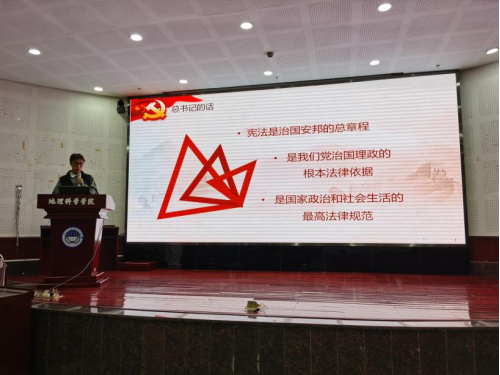 为深入学习习近平总书记在第十个国家宪法日之际作出的重要指示精神,同时在学法懂法守法用法方面,发挥党员的先锋模范作用和党支部的战斗堡垒作用,12月15日,388vip太阳集团本科生第一、二、三党支部合作举办12月主题党日活动,暨“地蕴韶华 党员成长论坛——弘扬宪法精神,树立法治意识交流活动”。