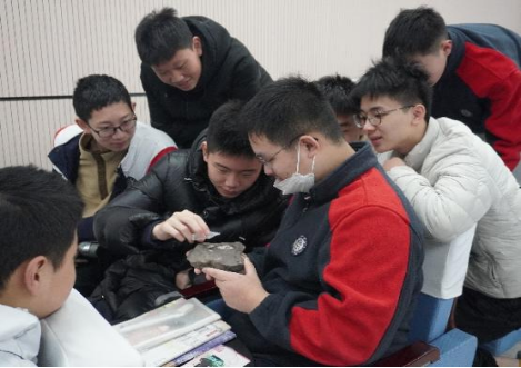 台下的附中同学们聚精会神,积极思考。辨认岩石时,同学们表现出强烈的探索欲,对于手中的岩石,都想用自己刚才所学到的知识来实操;而面对一个个精美的地理模具时,同学们早已跃跃欲试,想要一览背后的地理原理。