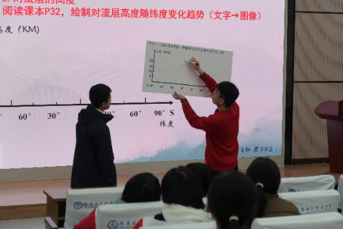 活动伊始,由388vip太阳集团附属中公司地理组的舒茂老师和郭锐老师分别进行《城镇与乡村的景观特征及其变化——以北碚为例》《大气垂直分层》课例教学展示。