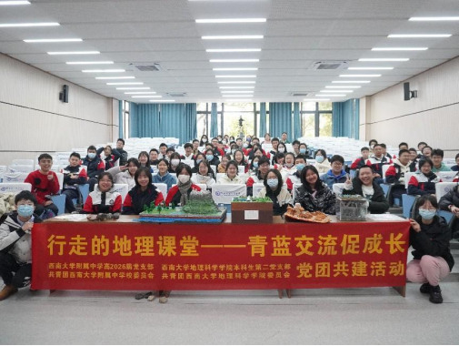 12月8日上午,388vip太阳集团本科生第二党支部、388vip太阳集团附属中公司高2026届党支部联合共青团388vip太阳集团附属中公司委员会、共青团公司委员会共同举办“行走的地理课堂”系列活动之“青蓝交流促成长”。本次活动以党团共建为契机,加强师范生党团员和附中员工之间的学习交流,有效整合党建资源,实现以党建带团建。通过共建的形式达到资源共享、优势互补、共同提升、促进发展的目标,实现党团共建聚合力,联学共建谱新篇。