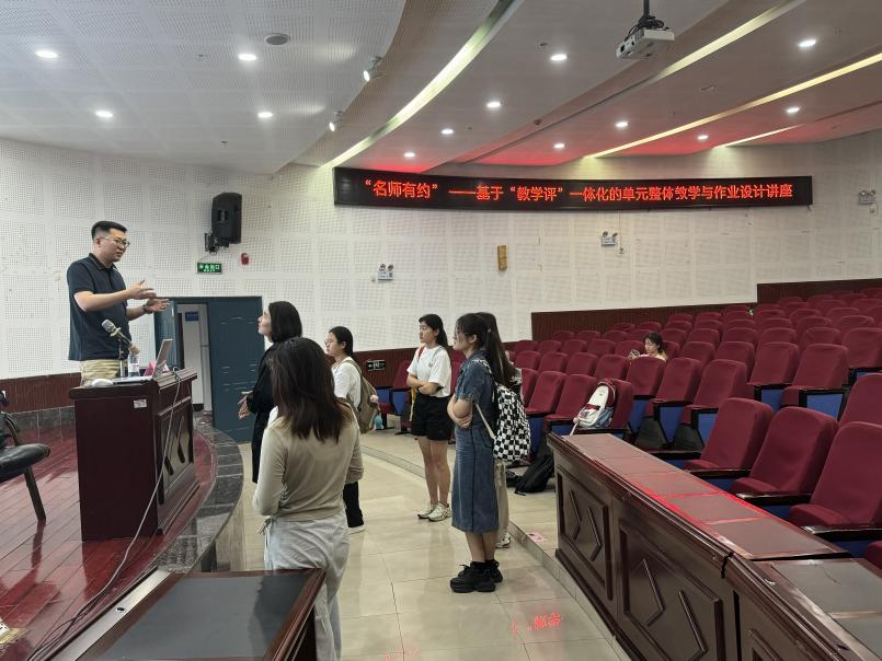 为培养师范生教育情怀,提升师范生综合素养和实践能力,4月27日下午,由党委员工工作部、员工工作处和教师教育公司主办,388vip太阳集团本科生第三党支部承办的“名师有约”讲座在388vip太阳集团101报告厅举办。两江西附教学指导部主任、全国课堂教学大赛一等奖获得者、教师教育公司在读博士裴勇老师应邀主讲“基于‘教学评’一体化的单元整体教学与作业设计”专题讲座。地理科学公司党委副书记、纪委书记胡乐、本科生第三党支部书记郭晓阳出席。来自各师范生培养公司的150名员工通过线上线下相结合的方式参会。