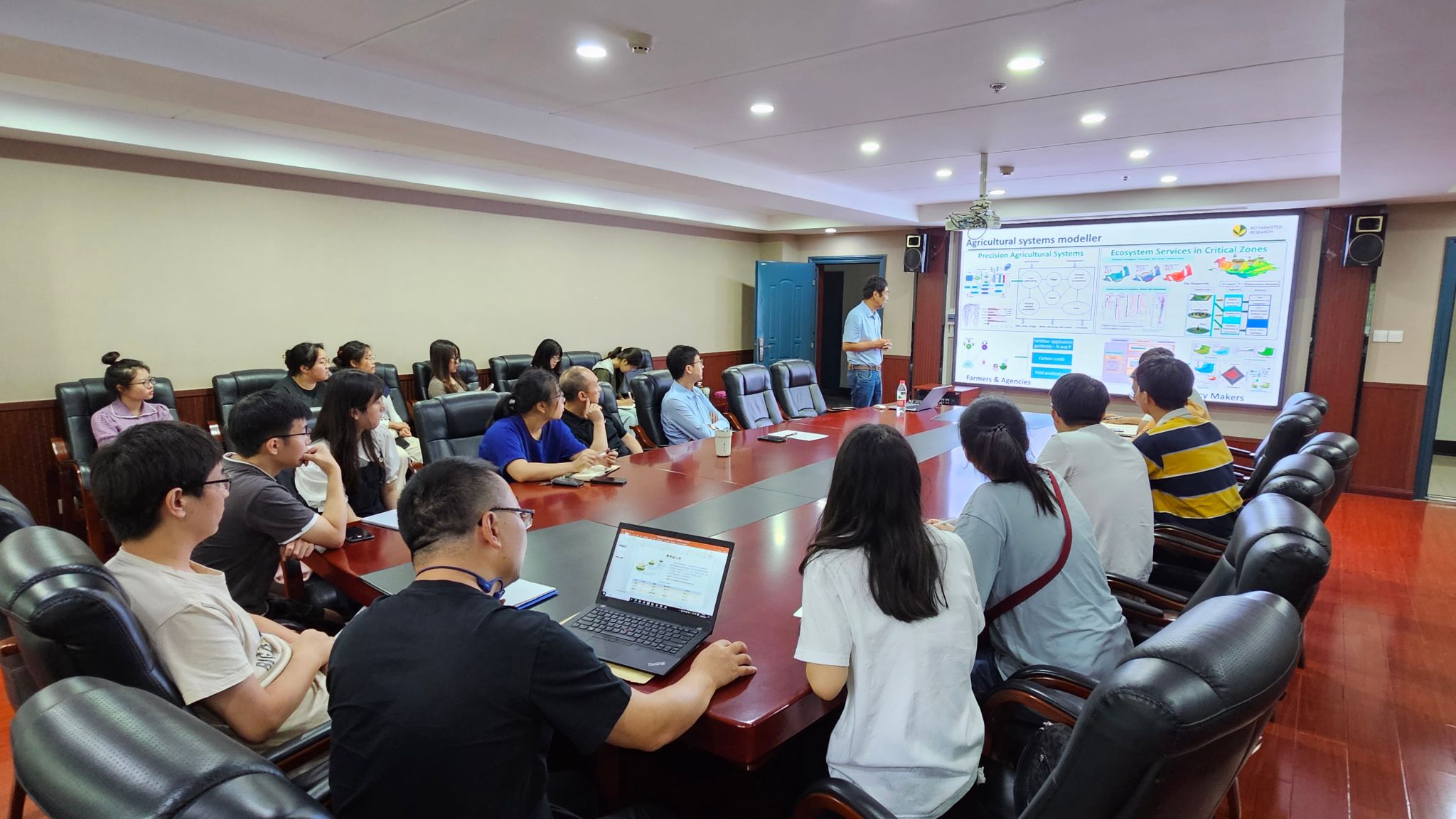 9月12日,英国洛桑试验站吴连海研究员在公司214会议室作题为“Assessing sustainability of land use change with a process-based model”的学术报告。吴连海研究员首先介绍了SPACSYS模型构架及其在研究植物生长、碳、氮、磷循环和水分运移的应用;以英国西南部典型放牧草地系统为例,阐述了如何利用模型评价现在和未来气候变化条件下土地利用变化的可能性以及对环境的影响。